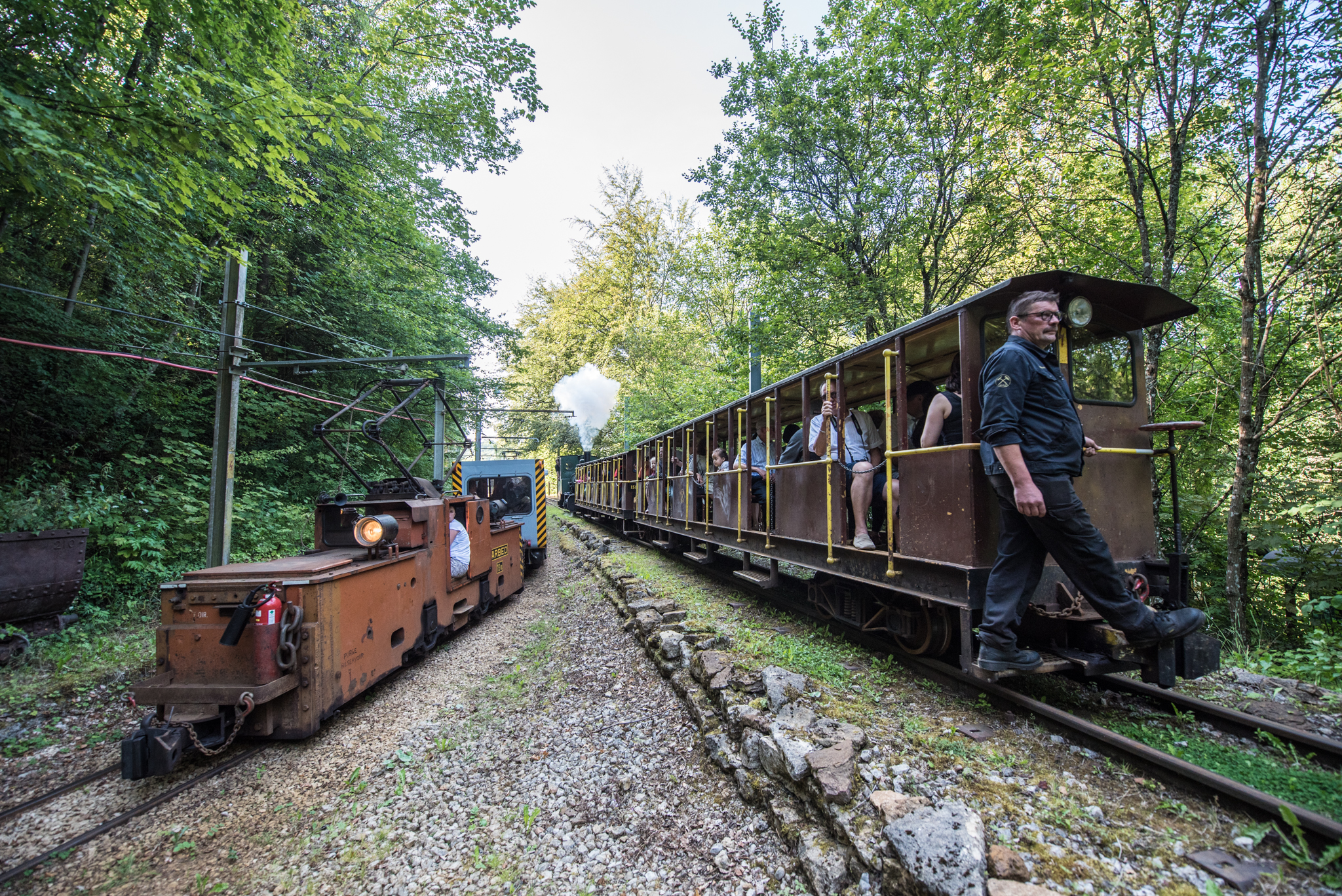 The Mining Train “Minièresbunn” circulates between Fond-de-Gras and Lasauvage throw the mine. Inside of the mine you will take part to a little guided tour with a lot of explantions and demonstrations. The association “Minièresbunn” has an impressive collection of locomotives (steam, diesel and electric) that were used at the time of mining to get the train cars loaded with iron ore from the mine (narrow gauge of 700 mm).